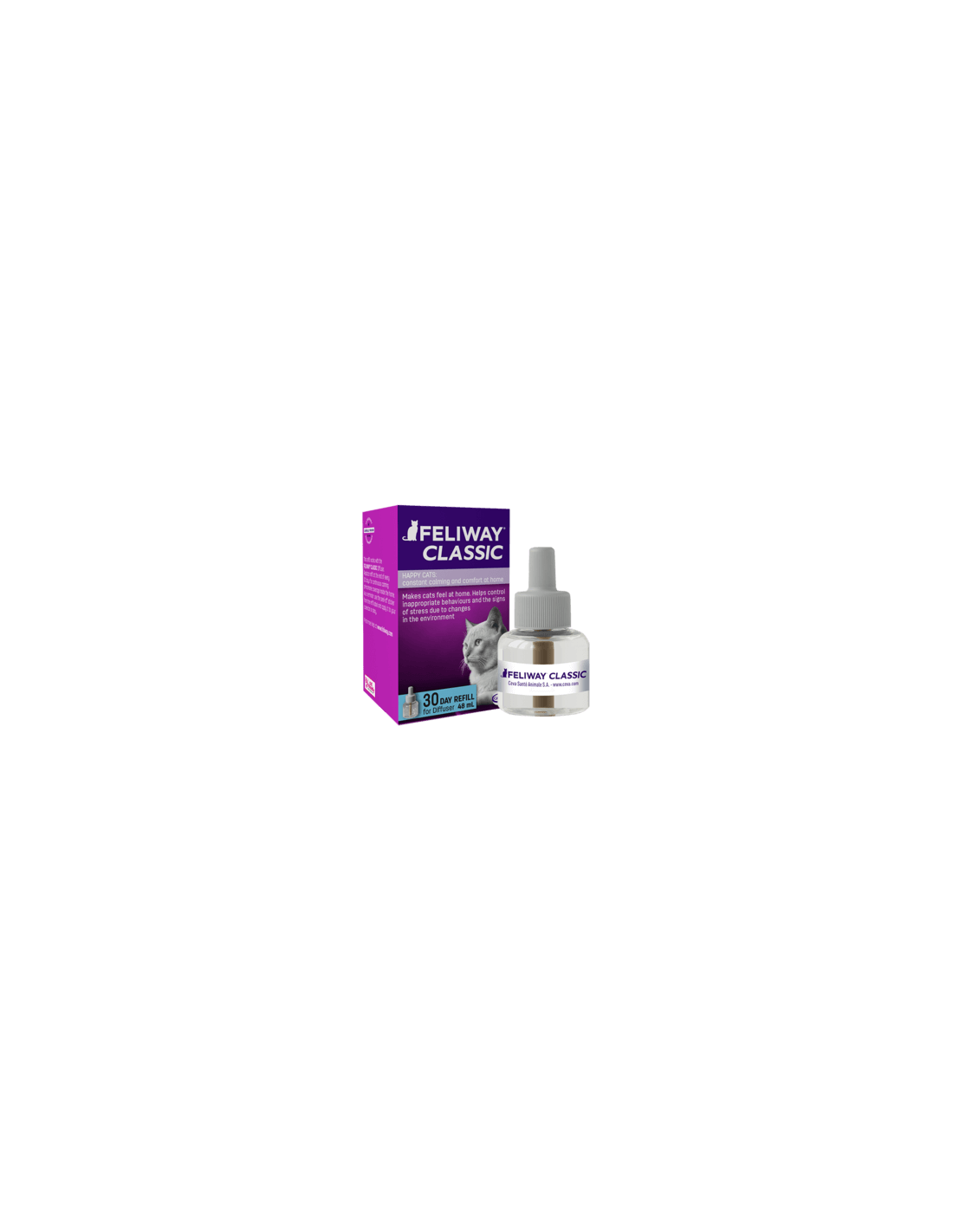 Feliway jest syntetycznym odpowiednikiem feromonów policzkowych o udowodnionym korzystnym wpływie na samopoczucie kotów. Pomaga kotom w radzeniu sobie ze zmianami w otoczeniu oraz innymi stresującymi sytuacjami. Feliway dodaje kotom pewności siebie. Opakowanie zawiera wymienny wkład o pojemności 48 ml działający 30 dni.