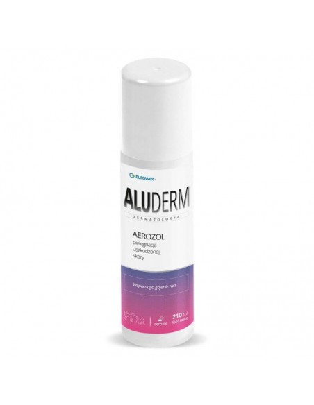 Alu Derm - preparat w sprayu dla psów i kotów do stosowania na uszkodzoną skórę. Działa ściągająco i wysuszająco. Wpływa na regenerację skóry, reguluje mikroflorę. Opakowanie: 210 ml.