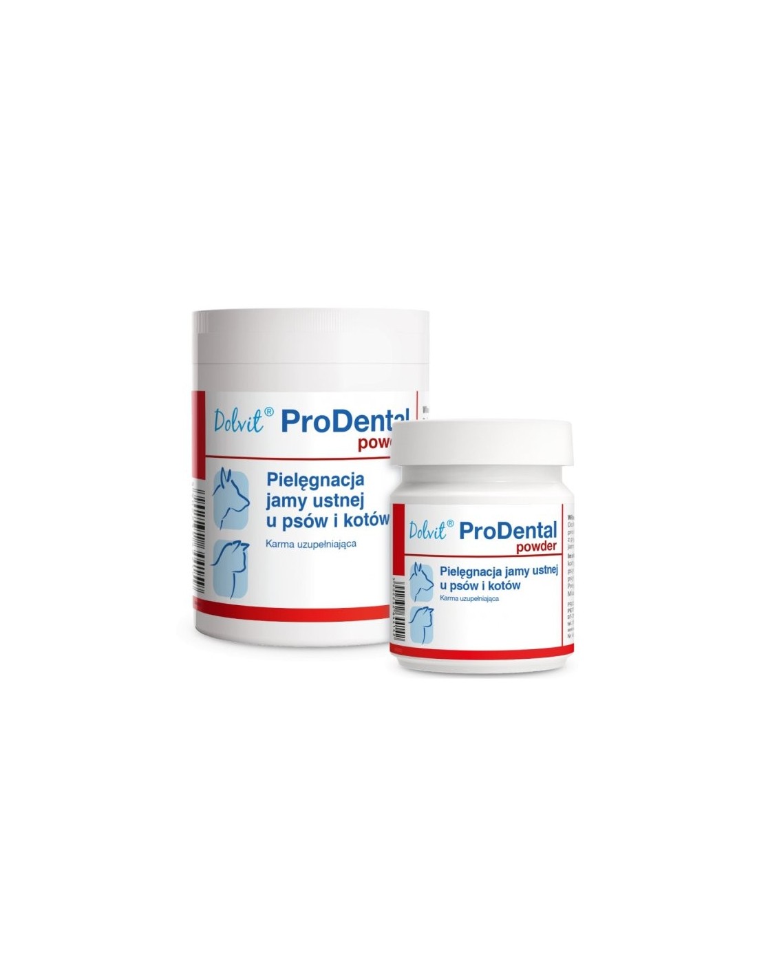 Dolvit ProDental powder - preparat dla psów i kotów służący do codziennej pielęgnacji jamy ustnej, stosowany z posiłkiem. ProDental zawiera cynk, algi morskie i ekstrakt z jeżówki (Echinacea purpurea). Preparat poprawia higienę jamy ustnej i ogranicza nieprzyjemny zapach jamy ustnej. Opakowanie 30 g, wewnątrz znajduje się miarka.