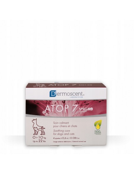 ATOP 7 Spoton to nowoczesny produkt stworzony z myślą o wrażliwej skórze psów i kotów o wadze 20-40 kg, który skutecznie łagodzi podrażnienia i wspiera ich naturalną barierę ochronną. Formuła oparta na naturalnych składnikach ma na celu ukojenie świądu i redukcję zaczerwienienia, a także zmniejszenie nadwrażliwości. W składzie produktu znajduje się olej roślinny, bogaty w niezbędne kwasy tłuszczowe Omega 3 i 6, które wspierają regenerację skóry i są nieosiągalne dla zwierzęcia w procesie ich syntetyzacji.