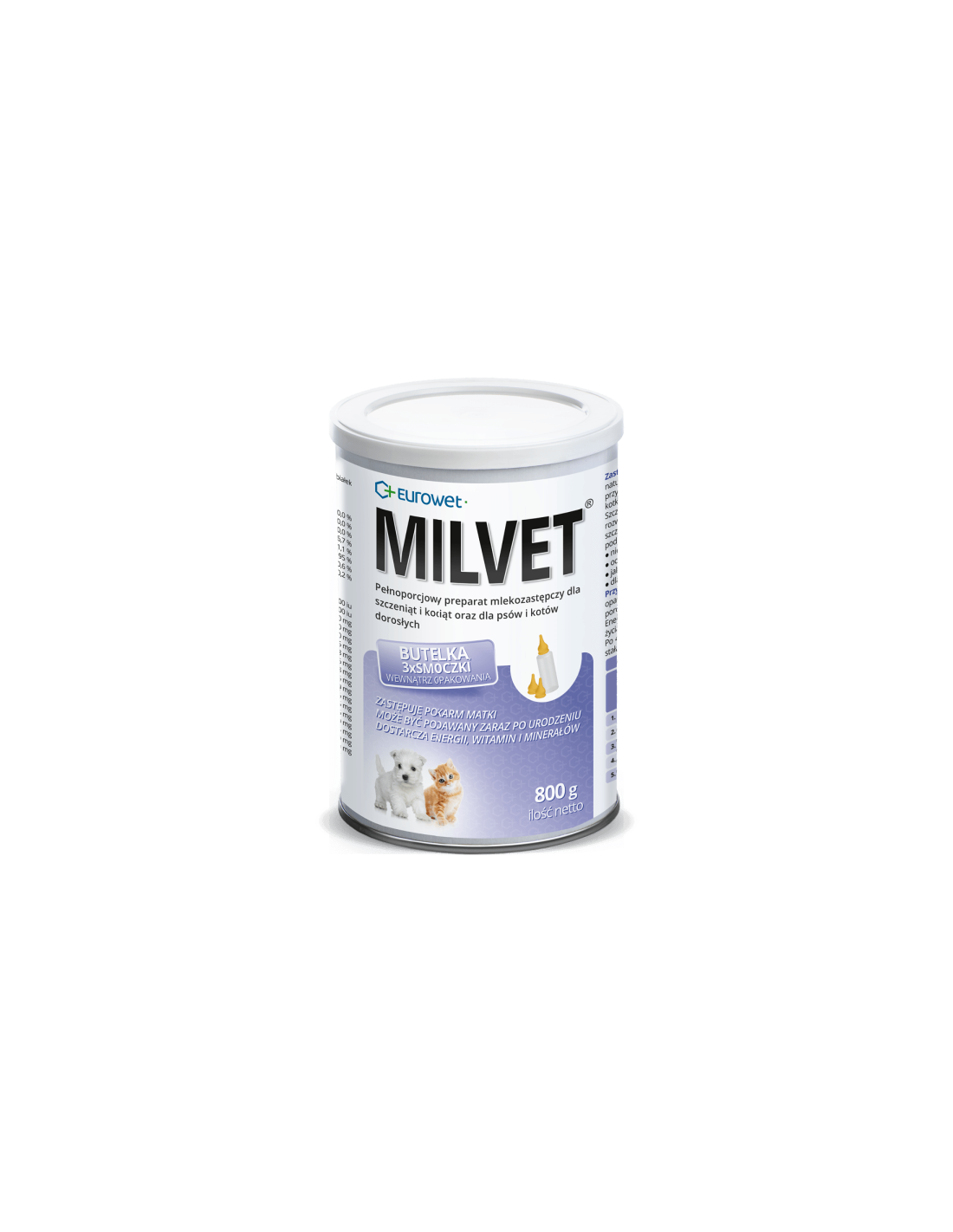 Milvet 800 g z butelką - mleko zastępcze dla szczeniąt i kociąt - Eurowet