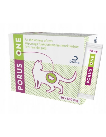 Preparat Porus® One wspomaga funkcjonowanie nerek kotów. Preparat Porus® One zawiera składnik zwany Renaltec®. Działa on poprzez wiązanie się z prekursorami mocznicowymi (czyli substancjami, z których powstają toksyny mocznicowe), produkowanymi przez bakterie w jelitach. Fizjologicznie prekursory toksyn mocznicowych są wchłaniane przez jelita i rozkładane w wątrobie na właściwe toksyny mocznicowe (takie jak siarczan indoksylu i p-krezolu), a następnie wydalane za pośrednictwem nerek. W przewlekłej chorobie nerek usuwanie toksyn mocznicowych przez nerki z krwi jest zaburzone, co skutkuje ich gromadzeniem się w organizmie. Preparat Porus® One wiąże się z prekursorami toksyn mocznicowych w jelitach kota, dzięki czemu nie mogą one przejść do krwioobiegu i zostać przekształcone w toksyny mocznicowe. W formie związanej usuwane są z kałem. Efektem wiązania prekursorów jest ograniczenie ilości gromadzących się toksyn mocznicowych i wsparcie zdrowia nerek.