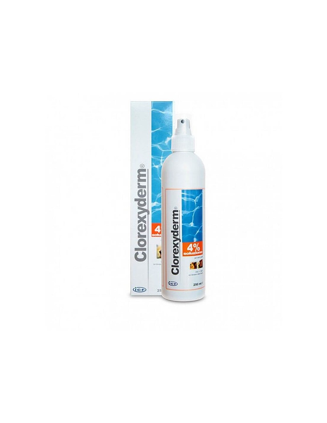 Clorexyderm Spray 4% - preparat antyseptyczny z chlorheksydyną w stężeniu 4% dla zwierząt. Nie wymaga spłukiwania. Gatunki docelowe: kot, pies. Spray stosowany jest w przypadku ostrych i przewlekłych zapaleń skóry na tle bakteryjnym, grzybiczym i pasożytniczym. Stosowany w przypadkach głębokiego ropnego zapalenia skóry, przeciwko dermatofitom, bakteriom gram ujemnym i Malassezia pachydermatis. Dzięki płynnej postaci wnika głęboko w skórę doskonale likwidując bakterie. Połączenie gliceryny, glikolu propylenowego oraz lanoliny sprawia, że Clorexyderm Spray nie wysusza skóry i nie wywołuje podrażnień. Może być stosowany przy otwartych ranach.