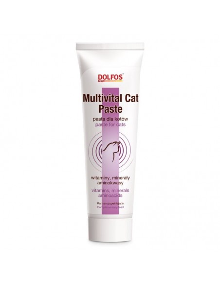 Multivital Cat Paste - pasta dla kotów, preparat uzupełniający. Zawiera mikroelementy, makroelementy, aminokwasy (tauryna), witaminy. Składniki preparatu zapewniają prawidłowy rozwój i funkcjonowanie organizmu, poprawiają kondycję kota. Preparat sprawia, że koty szybko zyskują piękny wygląd, pełnię sił i radość życia. Opakowanie: 100 g.