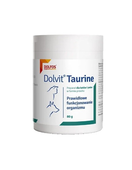 Dolvit® Taurine jest źródłem niezbędnego w diecie kotów oraz bardzo istotnego w żywieniu psów aminokwasu tauryny. Tauryna wpływa na prawidłowy rozwój i funkcjonowanie układu nerwowego, rozrodczego i odpornościowego. Wspomaga pracę serca, wątroby, nerek i trzustki. Jest niezbędna dla prawidłowego funkcjonowania mózgu i narządu wzroku. Wspomaga trawienie tłuszczów, ma działanie antyoksydacyjne. Stosowanie Dolvit® Taurine jest rekomendowane dla wszystkich kotów oraz psów, szczególnie będących na diecie o niewystarczającym poziomie tauryny, niskobiałkowej, domowej, BARF.