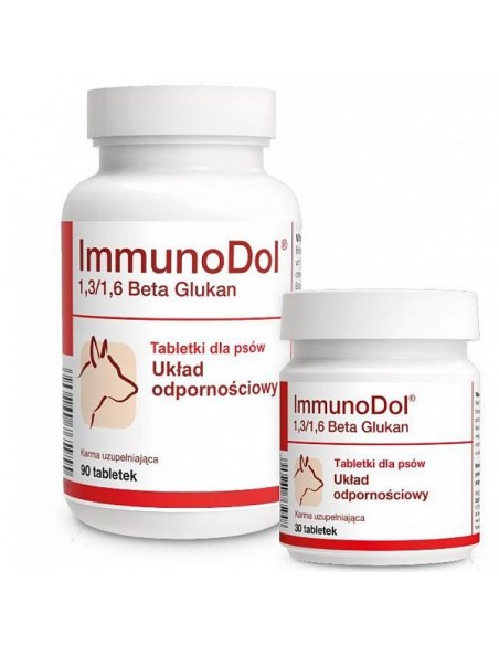ImmunoDol - preparat zawiera beta-1,3/1,6-glukan - polisacharyd wyizolowany ze ściany komórkowej drożdży Saccharomyces cerevisiae. Preparat stosuje się w trakcie rekonwalescencji, w sytuacjach stresowych, w okresie reprodukcji i przy obniżonej odporności. U młodych psów w celu wzmocnienia naturalnej odporności organizmu.