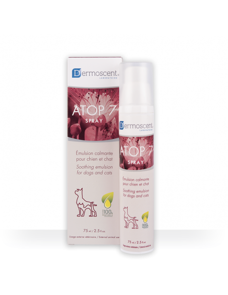 ATOP 7 Spray to emulsja dedykowana psom i kotom o wrażliwej, atopowej skórze. ATOP 7 Spray nie zawiera w swoim składzie sterydów, dzięki czemu jej działanie jest delikatne, kojące podrażnienia i nawilżające skórę.