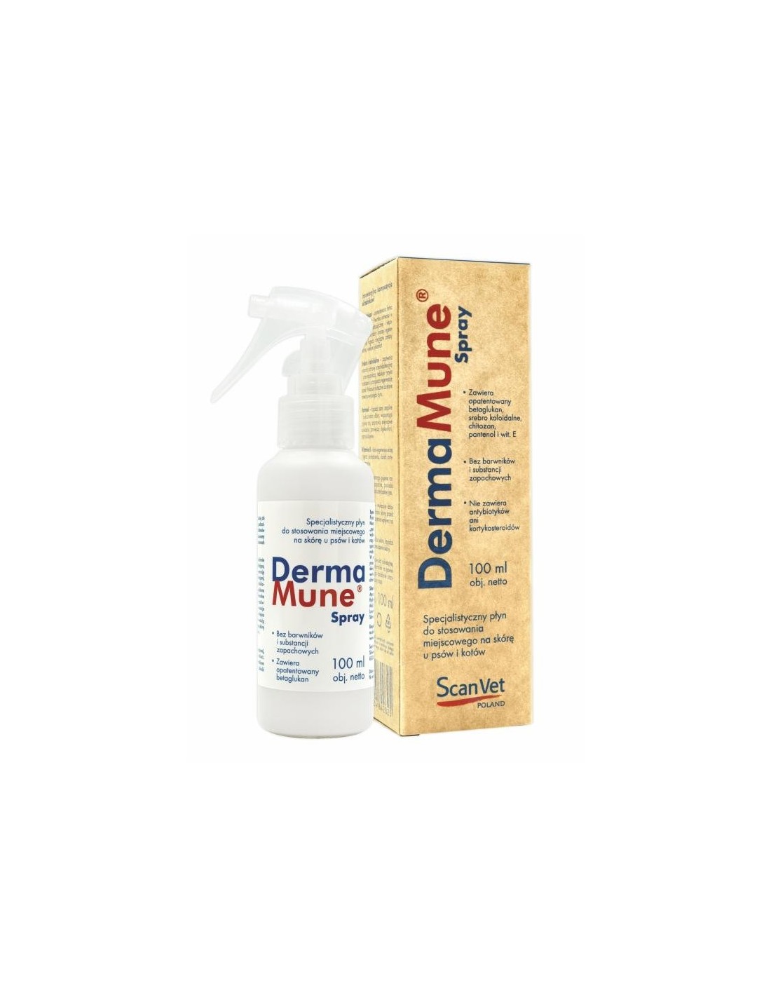 DermaMune to specjalistyczny płyn do stosowania miejscowego na skórę u psów i kotów. Bez barwników i substancji zapachowych.