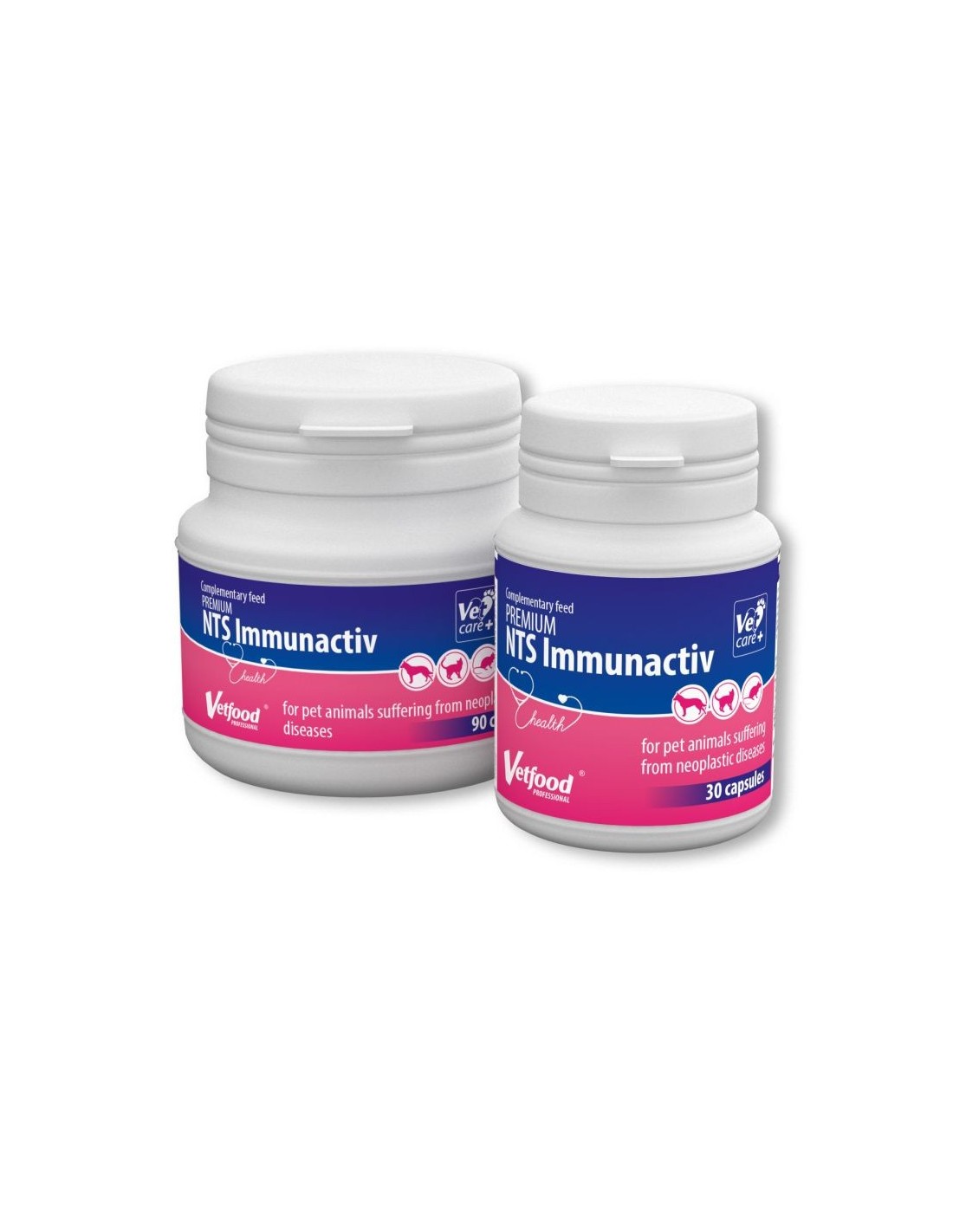 NTS Immunactiv - preparat stworzony z myślą o uzupełnieniu diety psów i kotów cierpiących z powodu choroby nowotworowej, zalecany jest jako wspomaganie leczenia nowotworów gruczołu mlekowego, chłoniaka, białaczki limfocytarnej, a także w celu zapobiegania nawrotom choroby nowotworowej, bądź też po bezpośrednim usunięciu nowotworów w szczególności guzów listwy mlecznej.