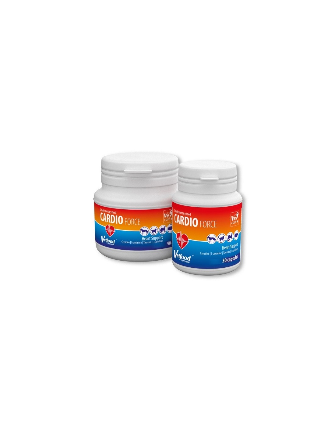 CARDIOforce jest suplementem przeznaczonym dla psów i kotów z objawami niewydolności mięśnia sercowego. Poprzez unikalny dobór składników CARDIOforce reguluje oraz wspomaga pracę mięśnia sercowego. Preparat CARDIOforce zawiera m. in.: kreatynę, taurynę, L-argininę, L-karnitynę, koenzym Q10, selen, wit. A i E, kwas foliowy. Kreatyna w organizmie ulega przemianie cyklicznej i odwracalnej do związku energetycznego: fosfokreatyny, która stanowi ważne źródło energii podczas pracy mięśni w tym mięśnia sercowego. Badania naukowe wskazują, że suplementacji tego związku sprzyja wzmocnieniu mięśnia sercowego oraz poprawia jego wydolność.