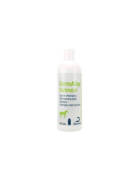 DermAllay Oatmeal Szampon Dechra - preparat dla koni zawierający wyciąg z owsa o działaniu nawilżającym i wspomagającym pielęgnację skóry w trakcie występowania sezonowego świądu. Opakowanie: 473 ml