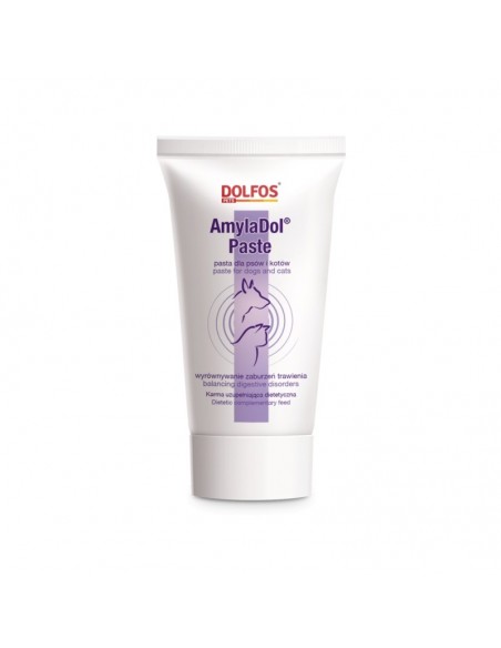 AmylaDol Paste - preparat w postaci pasty dla psów i kotów zawierający enzymy trawienne - amylazę, lipazę i proteazy. AmylaDol wyrównuje zaburzenia trawienia. Zalecana przy zewnątrzwydzielniczej niewydolności trzustki. Opakowanie: 50 g.