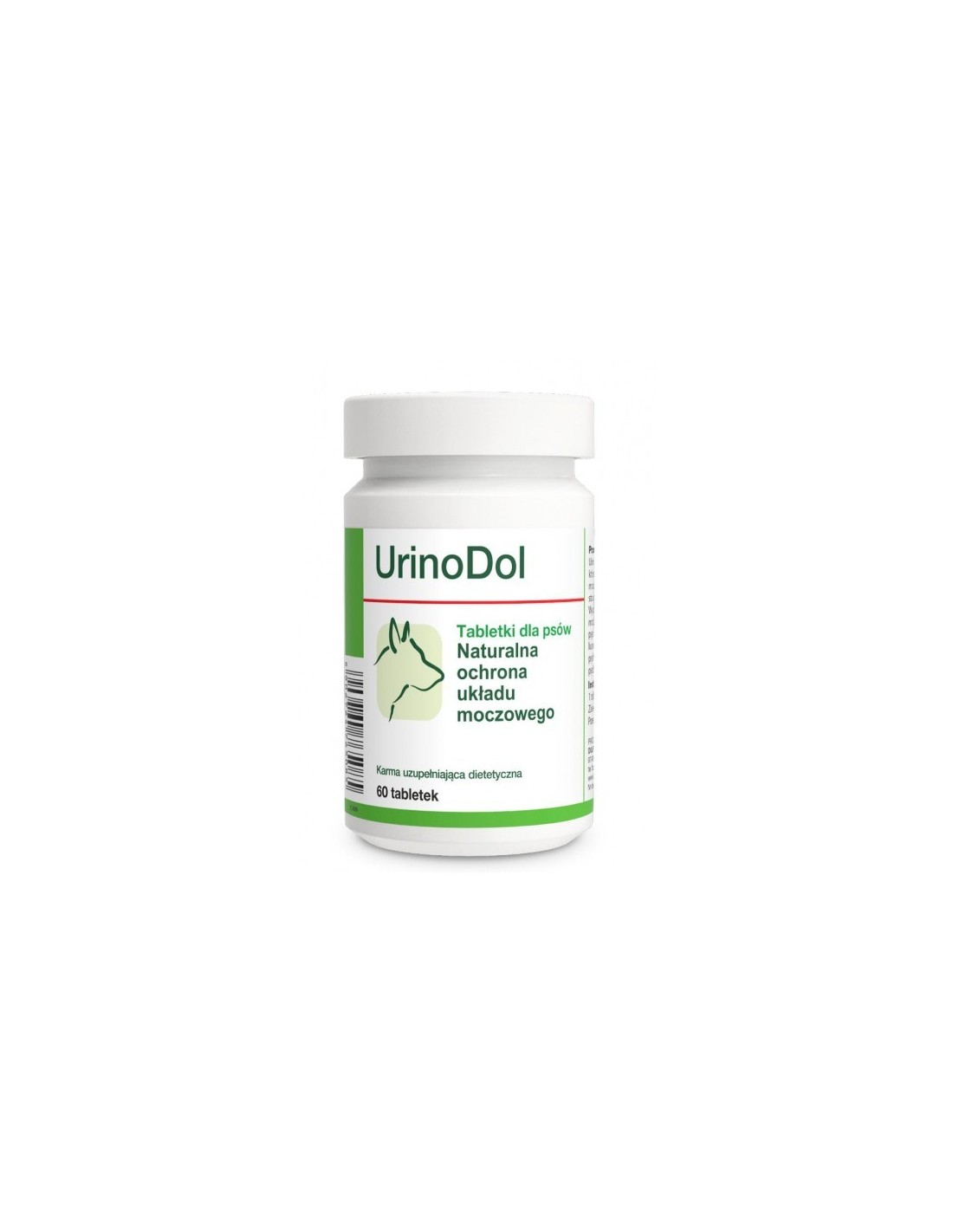 UrinoDol - preparat dla psów, wspomaga prawidłowe funkcjonowanie układu moczowego, ogranicza ponowne tworzenie się kamieni struwitowych. UrinoDol zawiera wyciąg z żurawiny, wyciąg z pietruszki, kwas hialuronowy, glukozaminę. Opakowanie: 60 tabletek.