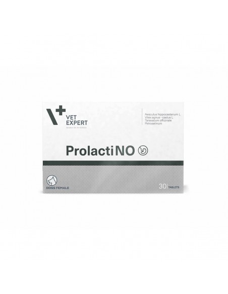 ProlactiNO firmy VetExpert - preparat dedykowany sukom ras małych jako wspomaganie leczenia tzw. ciąży urojonej. ProlactiNO zawiera wyciąg z niepokalanka pospolitego, wyciąg z pietruszki, mniszeka lekarskiego i kasztanowca - źródło escyny. Produkt można stosować samodzielnie oraz jako uzupełnienie terapii hormonalnej.