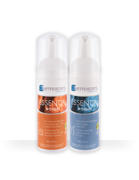 Essential Mousse to tzw. "suchy szampon", czyli naturalna pianka myjąca dla psów o fizjologicznym odczynie pH skóry. Nie wymaga spłukiwania wodą! Essential Mouse ma działanie odświeżające i regenerujące skórę i sierść, działa łagodząco na stany zapalne, eliminuje przykry zapach, działa nawilżająco i wspomaga naturalne procesy odbudowujące naturalną barierę ochronną skóry. Produkt zawiera niezbędne nienasycone kwasy tłuszczowe (omega 3-6), olejki eteryczne oraz opatentowany, naturalny czynnik wygładzający skórę.