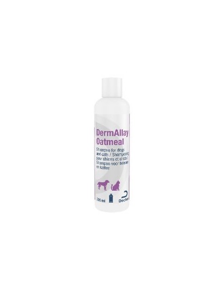 DermAllay Oatmeal Dechra to szampon dla psów i kotów, zawierający wyciąg z owsa i olej krokoszowy. DermAllay Oatmeal działa nawilżająco na skórę i sierść zwierząt oraz wspomaga pielęgnację przy sezonowym świądzie u alergików. Może być stosowany w połączeniu z odżywką DermAllay Oatmeal Spray Conditioner. Opakowanie 230 ml