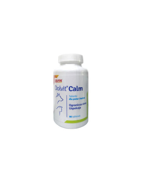 Dolvit Calm Dolfos - preparat zawiera tryptofan, aminokwas, który jest prekursorem serotoniny zwanej hormonem szczęścia. Dolvit Calm przeznaczony jest dla psów i kotów, zalecany do podawania w sytuacjach stresowych: podróż, wystawa, burza, fajerwerki, wizyta u lekarza, długotrwałe leczenie, itp. Opakowanie: 90 tabletek.