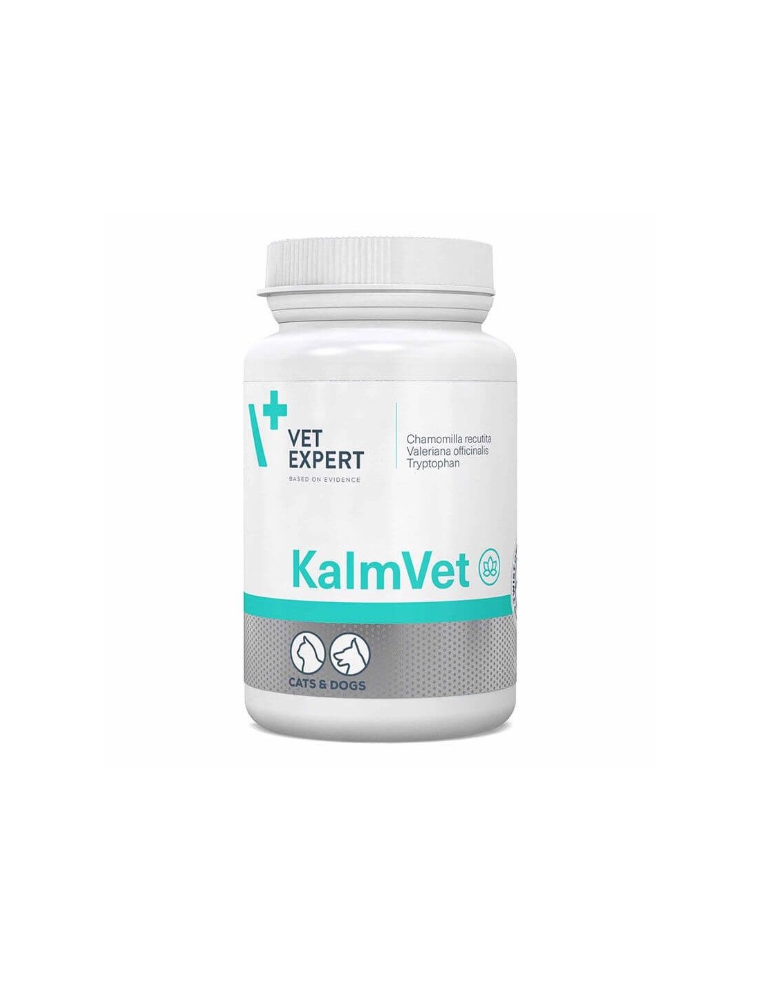 KalmVet preparat z tryptofanem, rumiankiem i wyciągiem z kozłka lekarskiego dla psów i kotów o działaniu uspokajającym. Łagodzi stres i niepokój.