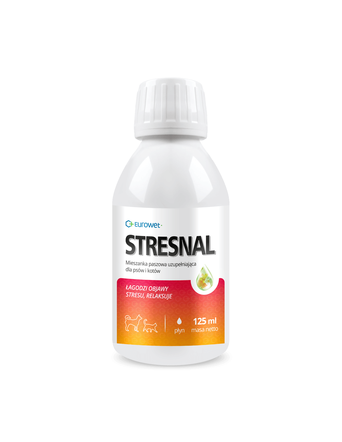 Stresnal to produkt w postaci syropu, którego zestaw naturalnie dobranych wyciągów z ziół wpływa uspokajająco na psy i koty w sytuacjach stresowych. Zawiera wyciąg z maczka kalifornijskiego, który łagodzi objawy stresu oraz pomaga zmniejszyć napięcie mięśniowe. Stresnal działa korzystnie na zwierzęta w czasie nieobecności właściciela, podczas podróży, wystaw, zawodów oraz w okresie depresji u szczeniąt.