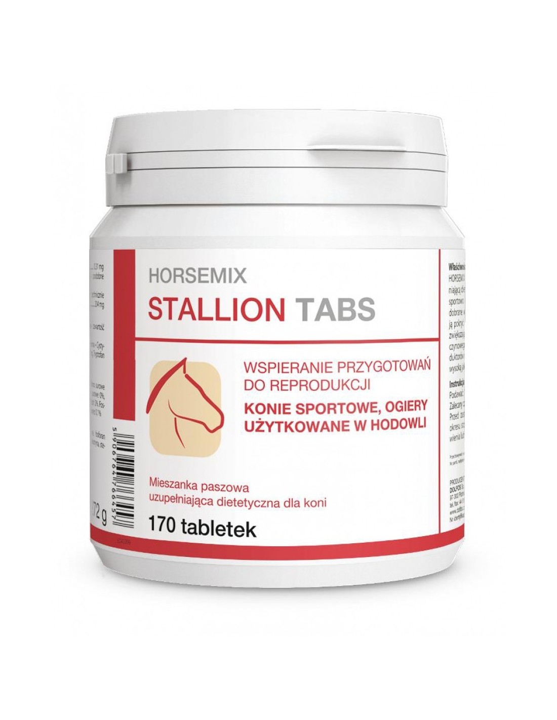 HorseMix Stallion Tabs - mieszanka paszowa uzupełniająca przeznaczona dla ogierów użytkowanych sportowo i reproduktorów. Witaminy i składniki mineralne dobrane w optymalnych poziomach i proporcjach pozwalają pokryć wysokie zapotrzebowanie przy dużych wysiłkach, zwiększają wydolność i pozwalają na utrzymanie konia wyczynowego w optymalnej kondycji. U reproduktorów wpływają na prawidłowe funkcjonowanie jąder oraz wysoką jakość nasienia.