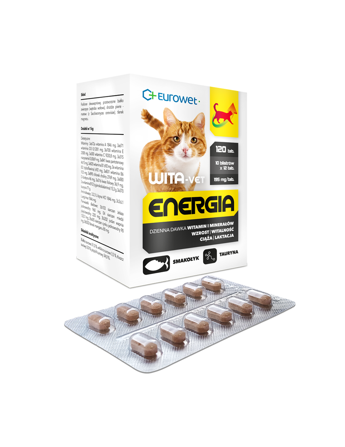 Wita-Vet Energia firmy Eurowet - suplement dla kociąt powyżej 3 miesiąca życia, kotek ciężarnych i karmiących oraz dorosłych kotów. Wyjątkowo smaczny, chętnie jedzony przez koty.