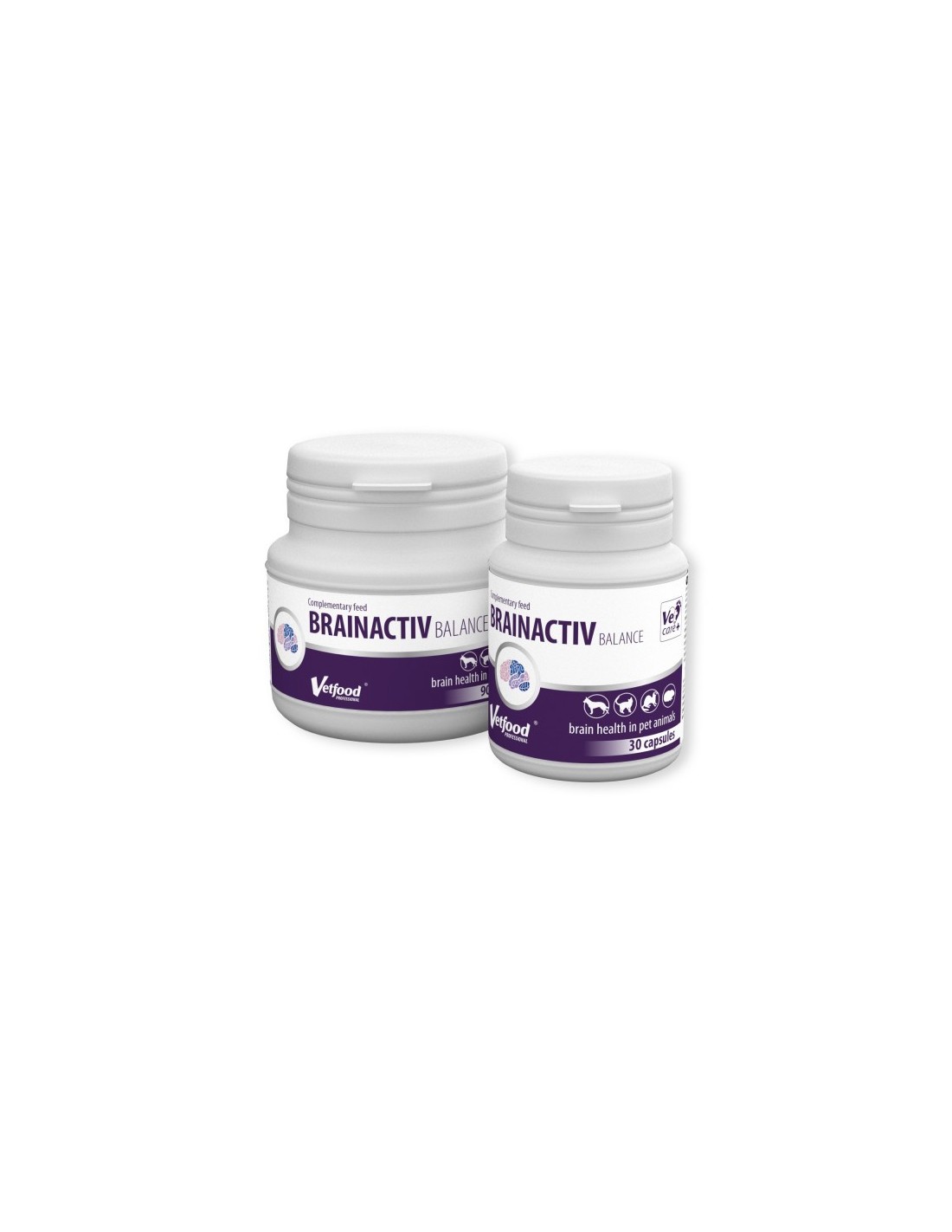 Brainactiv Balance Vetfood - preparat dla psów, kotów, fretek, kawii domowych, gryzoni. Brainactiv Balance jest preparatem zapobiegającym obniżeniu funkcjonalnej aktywności układu nerwowego i zmianom wynikającym z procesu starzenia się. Zmiany te dotyczą 62% psów i kotów powyżej 11-tego roku życia i wszystkich powyżej 15-tego roku życia. Regularne stosowanie Brainactiv Balance zwiększa żywotność zwierzęcia, poprawia funkcje układu nerwowego.