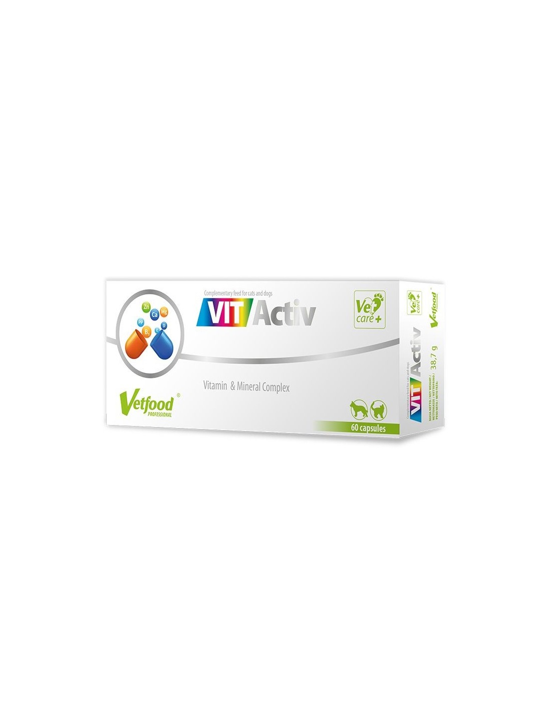VITActiv firmy Vetfood to starannie zbilansowany zestaw witamin i minerałów dla psów i kotów. Produkt jest doskonałym uzupełnieniem diety zwierząt w każdym wieku. Składniki aktywne zawarte w produkcie wspomagają prawidłowe funkcjonowanie, wzrost i rozwój organizmu oraz uzupełniają dietę o niezbędne dla zdrowia składniki odżywcze w tym: witaminy, minerały, antyoksydanty (kwas alfa- liponowy, kwasy tłuszczowe Omega-3) i związki wspierające odporność: beta-glukan 1,3/1,6 oraz algi brunatne.