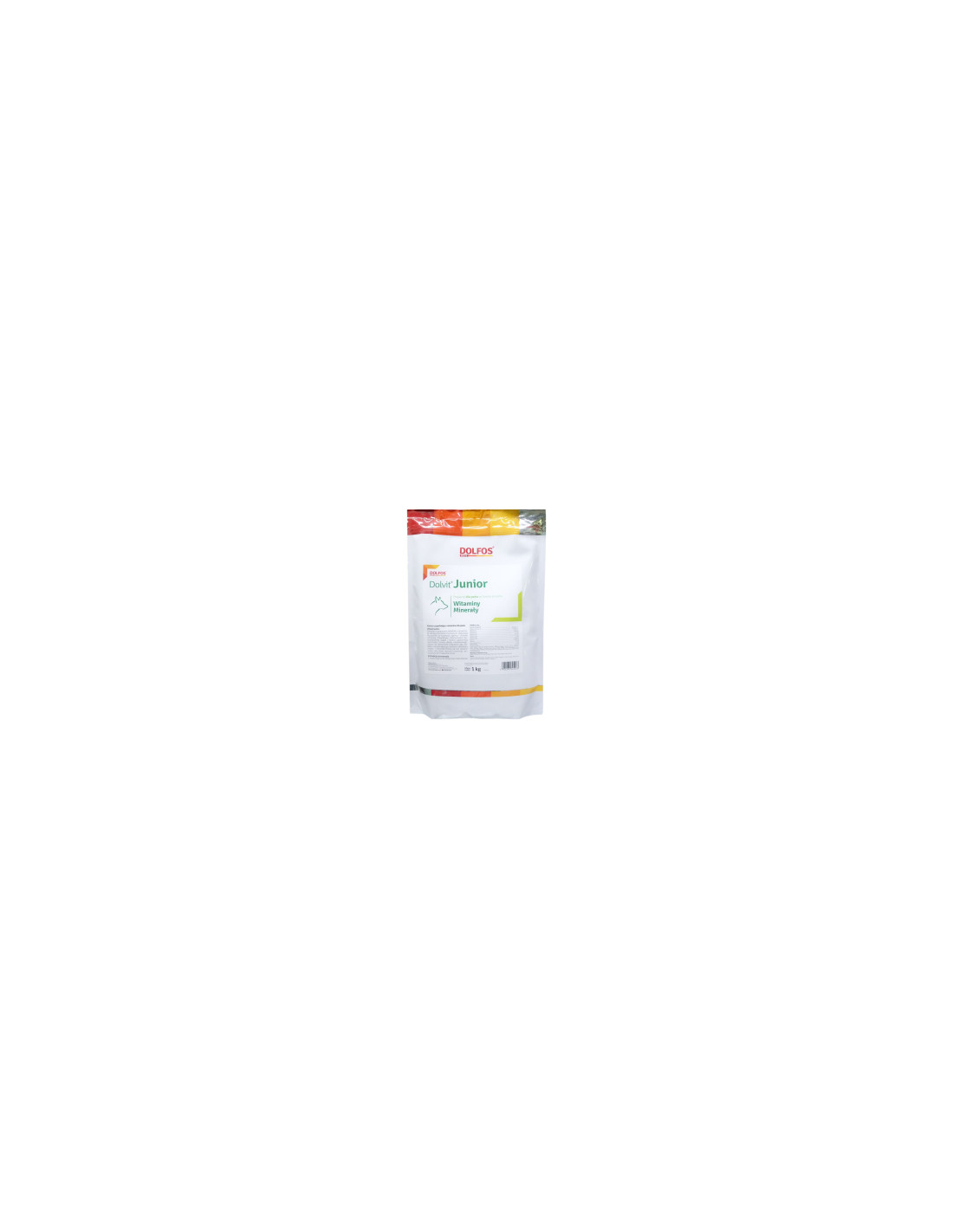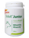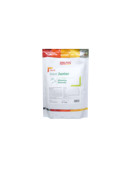 Dolvit Junior - witaminowo-mineralny preparat dla szczeniąt i młodych psów. Zawarte w preparacie składniki wpływają korzystnie na kondycję ogólną i okrywę włosową. Prawidłowo zbilansowane makroelementy (wapń i fosfor) zapewniają harmonijny rozwój układu szkieletowego. Zaleca się stosowanie preparatu jako dodatku uzupełniającego zarówno niedobory makro- i mikroelementów jak też witamin, przez cały okres wzrostu szczeniąt, począwszy od 3 tygodnia życia.